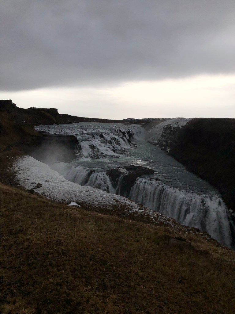 This waterfall, the second largest in Iceland based on the volume of water flowing through it every second, was breathtaking. The water cascading from one place to the next was so calming and my new friend, Maggie, and I couldn’t stop looking at it!