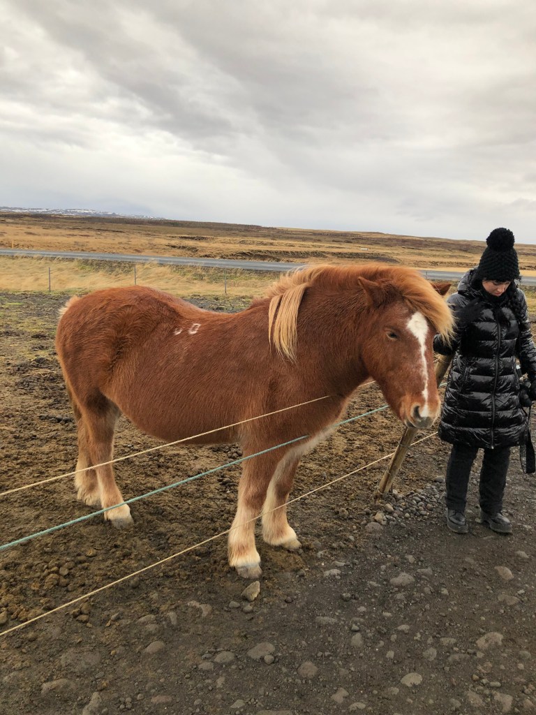 There’s something super special about these horses…they’re tiny!! They are the ONLY type of horses that live in Iceland, and if one is exported elsewhere, it is not allowed back in the country. We got to stop and visit some, getting to feed and pet them!