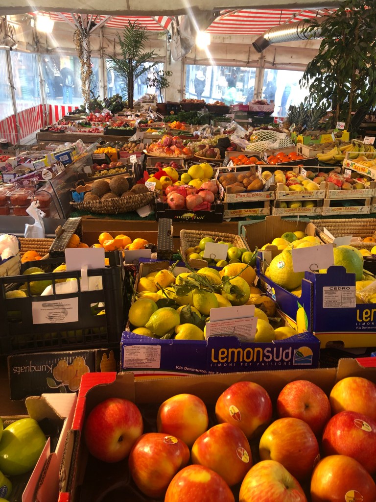 After a super yummy breakfast, we headed to a Christmas market that was right outside of our Airbnb. There, we bought some fresh fruit and eggs for breakfast the next morning and and enjoyed all of the Christmas festivities!
