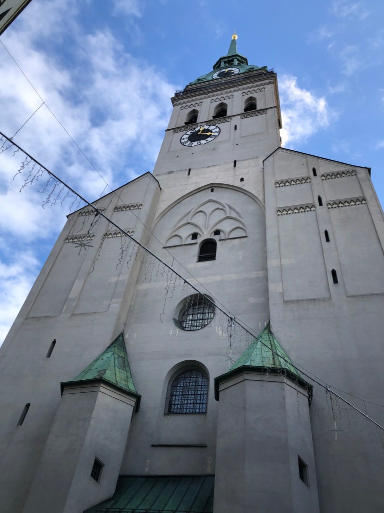 After the neighborhood Christmas market, we went to Saint Peter’s Church, which is the most famous church in Munich! It was breathtaking. We went inside the church and also climbed up to the top of the tower and got incredible view of the city.